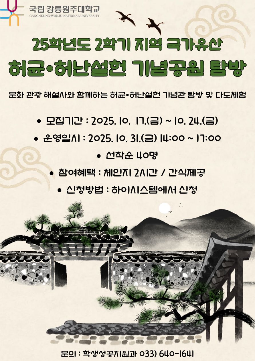2025학년도 2학기 국가유산(허균•허난설헌 기념관/다도체험) 탐방 프로그램