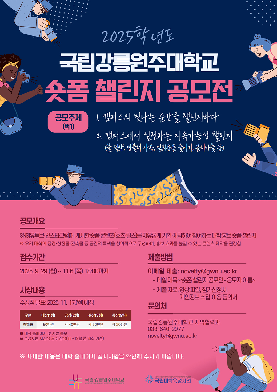「2025학년도 국립강릉원주대학교 숏폼 챌린지 공모전」 공고 |