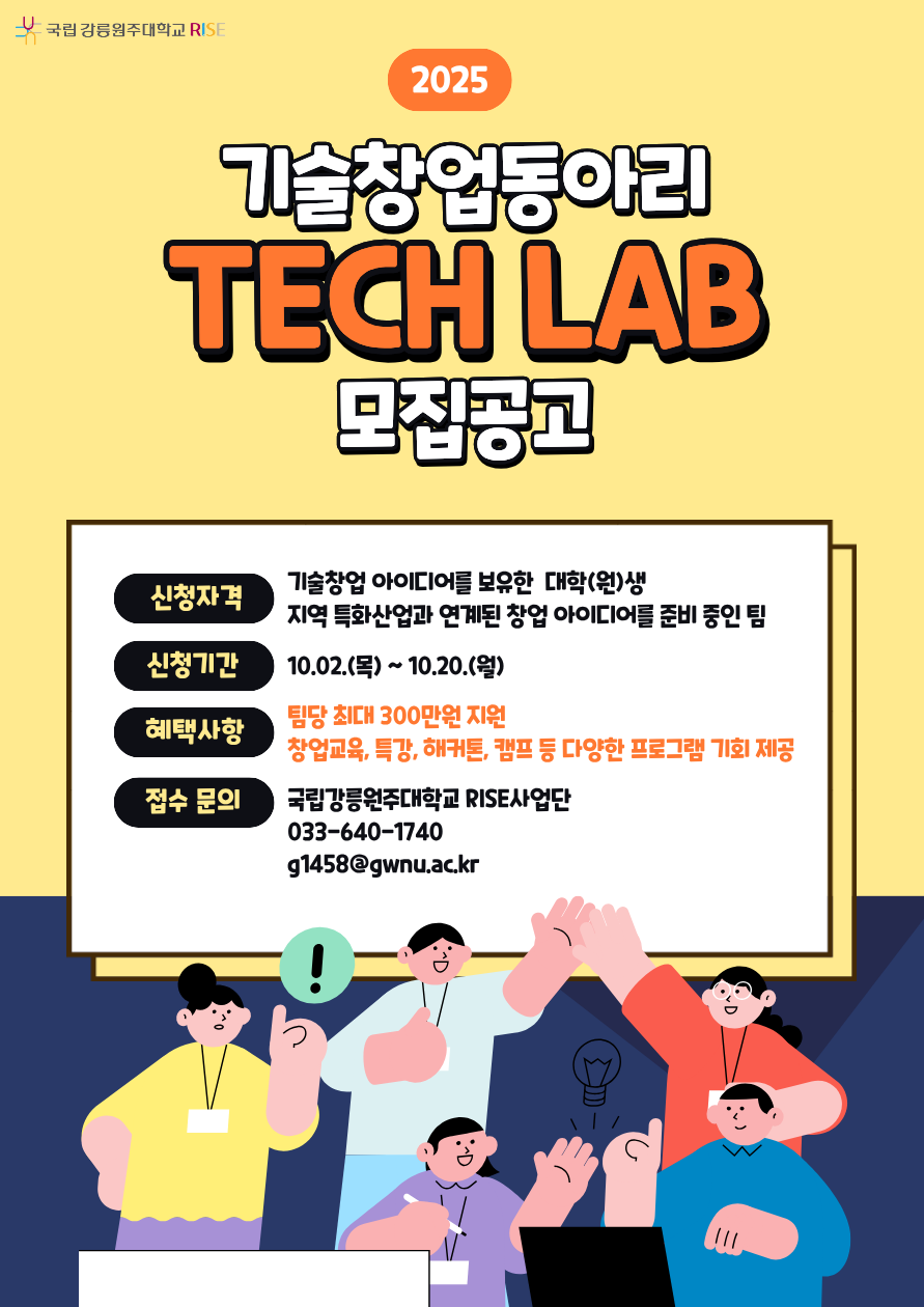 [RISE사업] 2025년도 기술창업동아리(Tech Lab) 모집 기간 연장 안내(~10.20.까지)